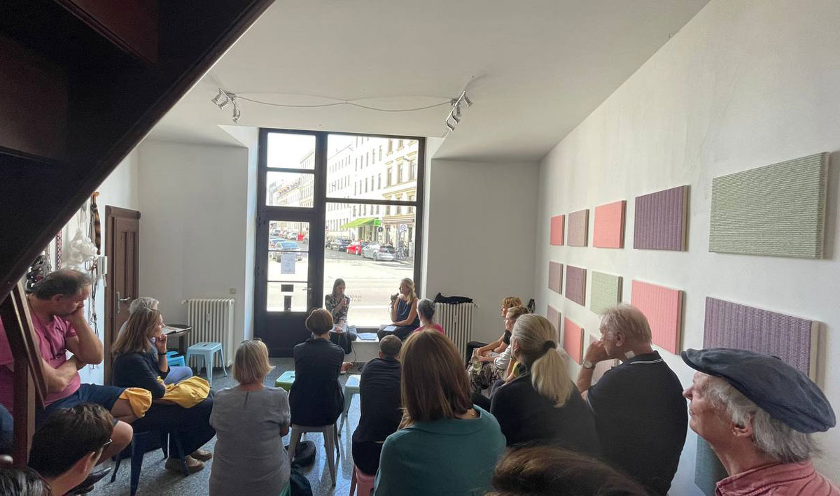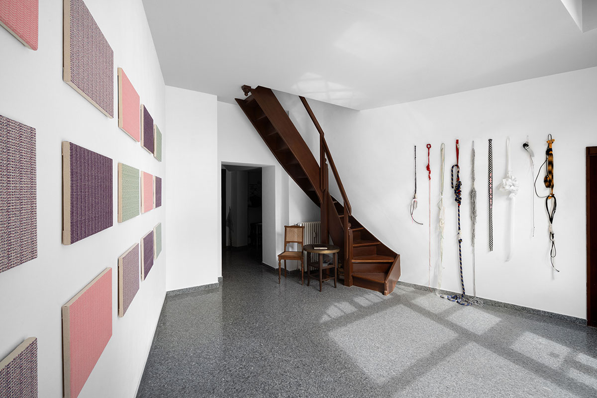 Meyer geht ambivalenten Phänomenen nach, feinen Narrativen neben dem Naheliegenden und Alltäglichen. Sie, Antiheroin, denkt in Dimensionen von Vertrautheit, Erleben und Erfahrung, hinterfragt trotz Verbundenheit kollektive Denkmuster. Meyer nutzt das Textile als universelles philosophisches Vokabular für ihre ganz eigenen Betrachtungen. Sie öffnet feine Assoziationsräume, erzeugt Gegenlesen. Das Textile, längst basaler Teil unserer Sprache, dient ihr als vertrautes gestalterisches Medium. Es beansprucht von sich aus keinen Raum, kein Volumen. Es ist nicht standfest. Es muss gehalten werden, getragen, gespannt, aufgeblasen, verbunden oder verknotet. Es kommt aus den Fasern zur Linearität, dem Wirken und Verweben zur Fläche, zum Volumen, zur Form.